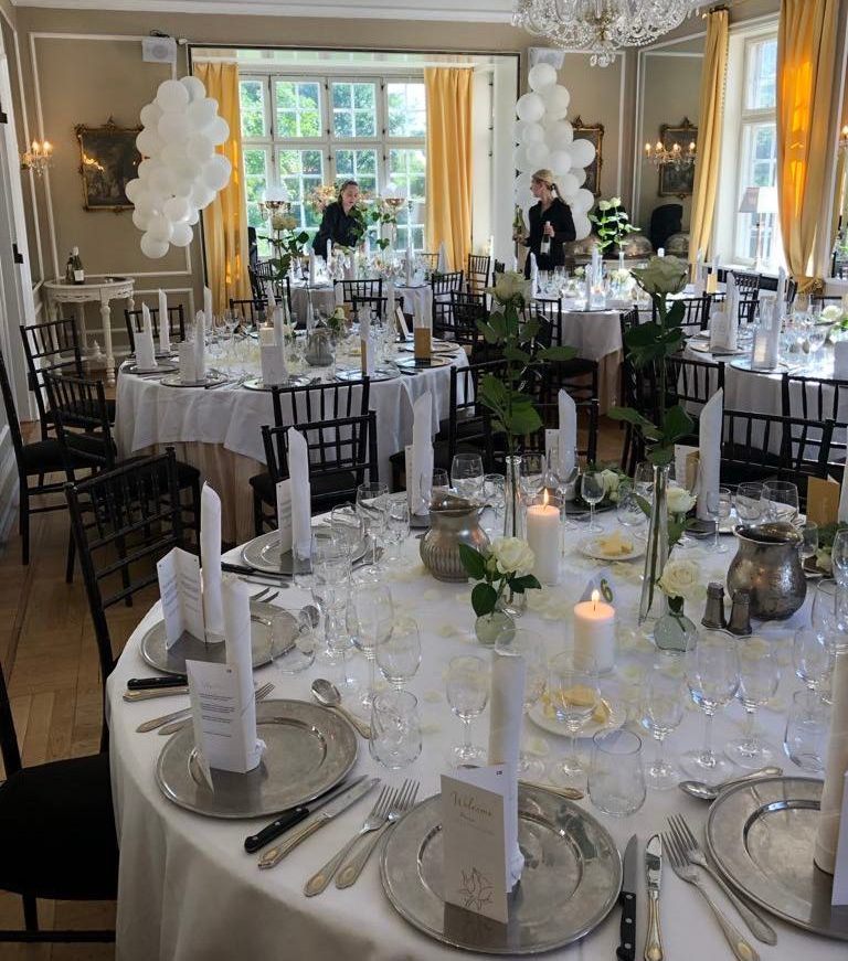 Betjening er inkluderet i hele arrangementets varighed. Festopdækning inkluderer friske blomster som standard, og vores erfarne team står klar til at planlægge og lede arrangementet for at sikre, at alt forløber smidigt og mindeværdigt.