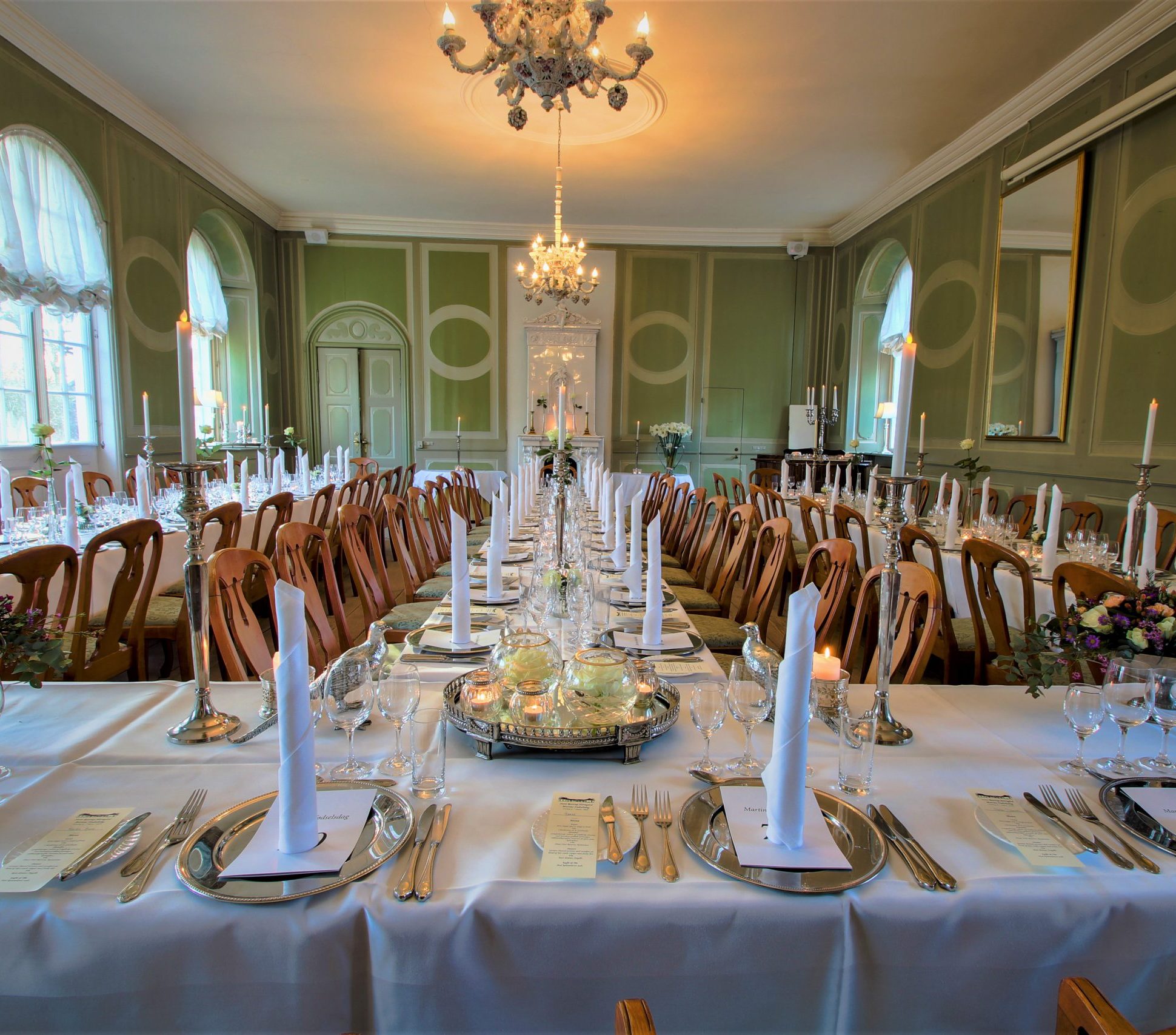 Betjening er inkluderet i hele arrangementets varighed. Festopdækning inkluderer friske blomster som standard, og vores erfarne team står klar til at planlægge og lede arrangementet for at sikre, at alt forløber smidigt og mindeværdigt.