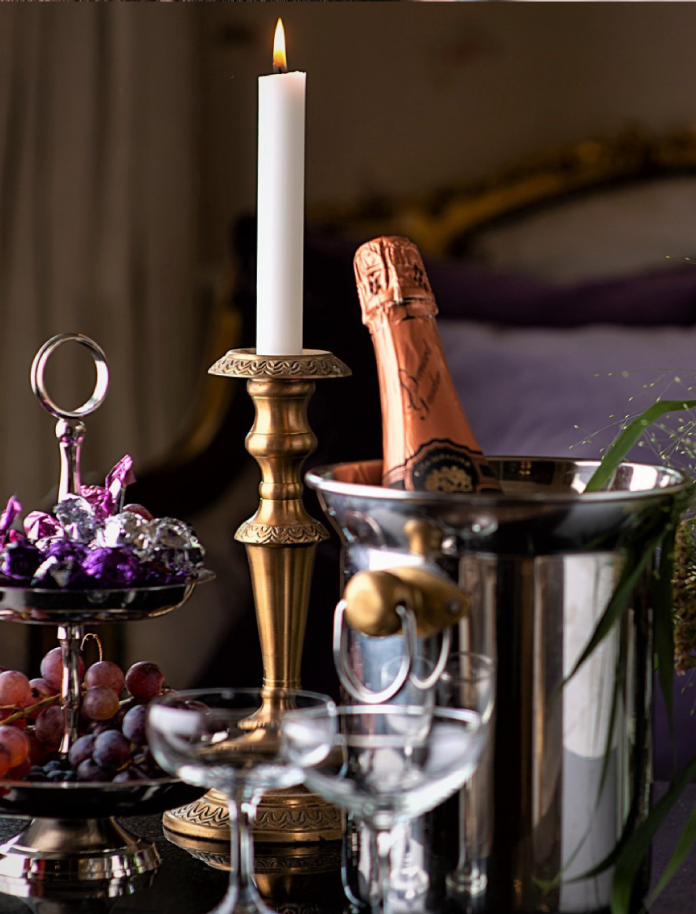âą En flaske mousserende vin ved ankomst